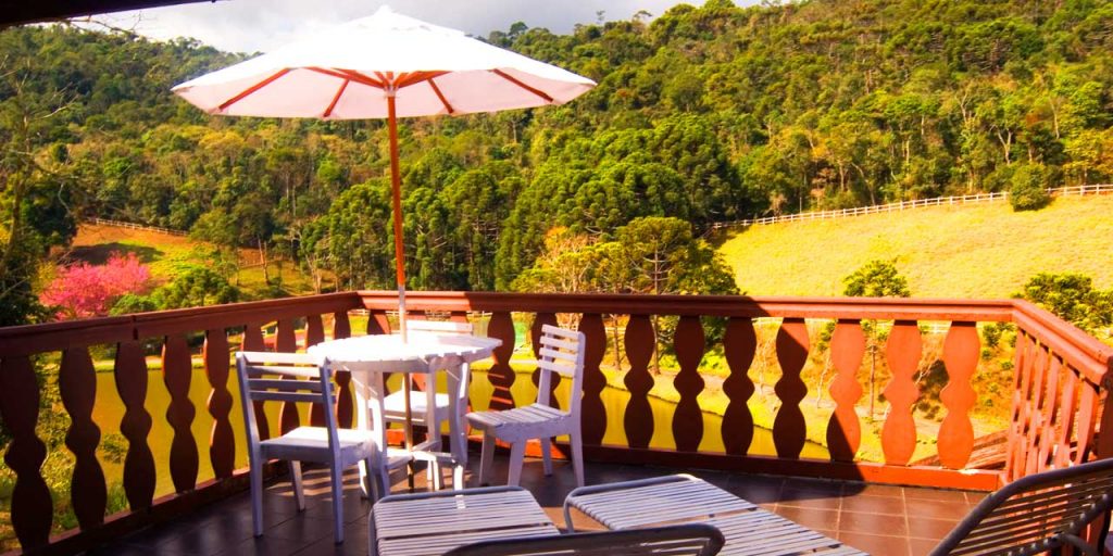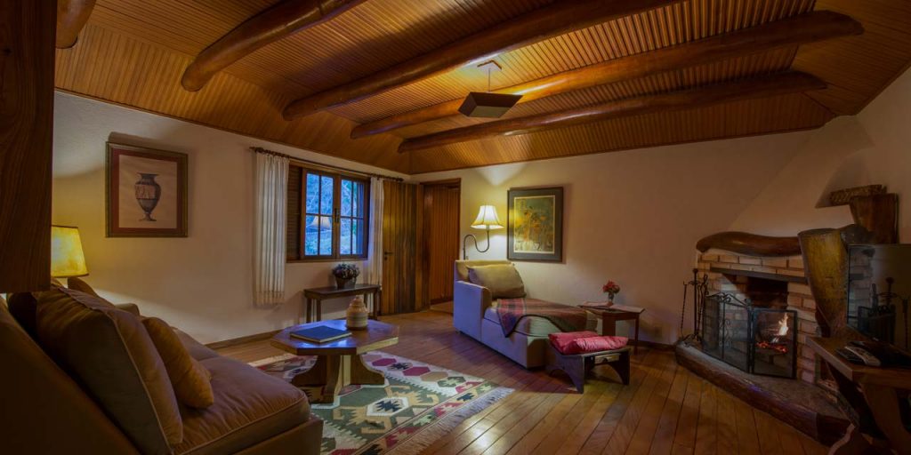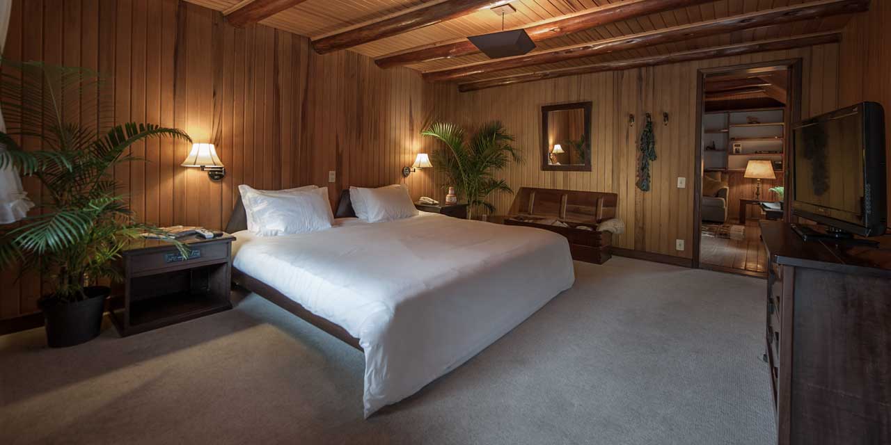 A espaçosa Suite do Farmerhaus, com um grande terraço privativo com vista para o lago e a Mata Atlântica que circunda o Hotel, possui cama king size, duas TVs HD a cabo, sala com lareira lareira, banheiro com roupões e “amenities”.