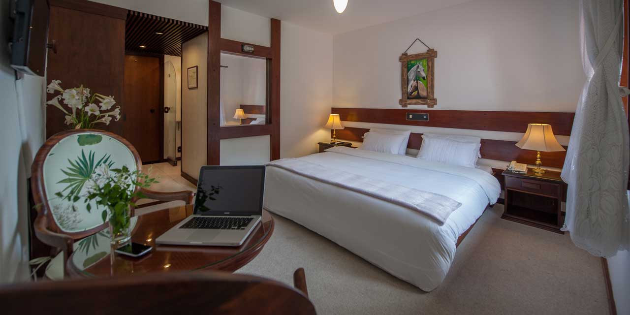 Os apartamentos Standard do Chalé possuem cama king size, varanda com vista para a piscina e para o vale, TV Sky HD, frigobar, telefone, cofre, banheiro com secador de cabelo, roupões, espelho amplificador e “amenities”.