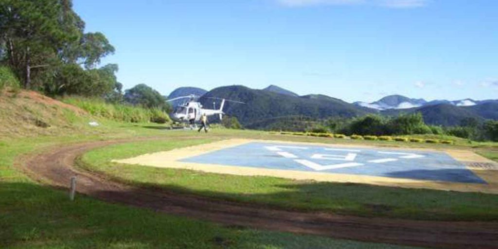 O hotel possui um heliponto dentro da propriedade, mas distante o suficiente para não incomodar os demais hóspedes,